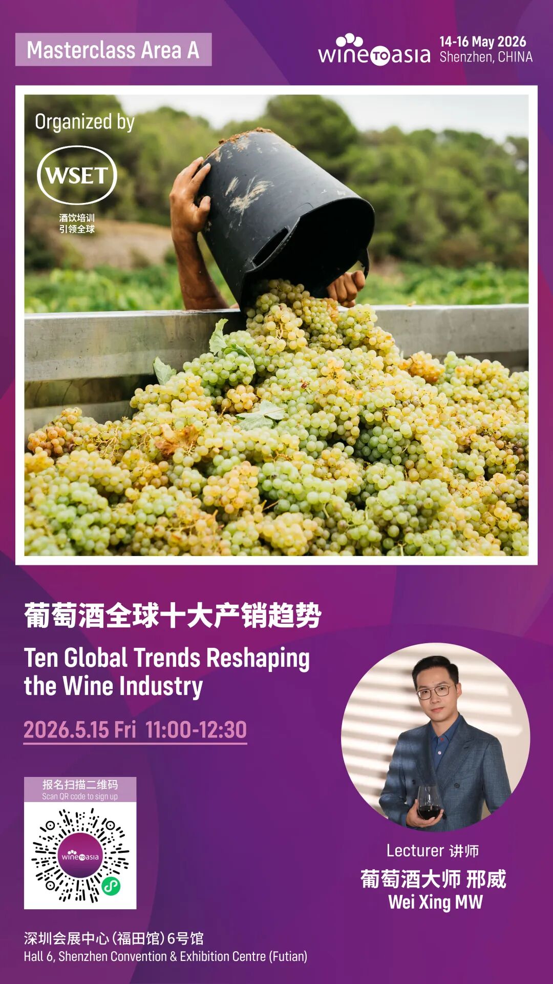 Wine to Asia报名进行中 WSET大师班+云逛展!深圳见